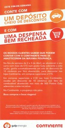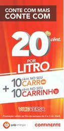 Este fim-de-semana Galp e Continente dão descontos até 20 cêntimos A-lupa-de-alguem 02.04.11 Podem saber de mais aqui . sinto-me: Tags:promoção link do post comentar favorito Mais para ler