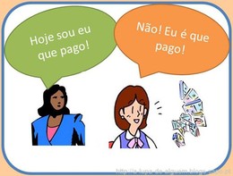 Duas mulheres, amigas suponho, discutiam quem ia pagar a conta! Parecia uma cena de malucos! Uma empurrava a outra. Uma disse-me " não aceite o dinheiro dela, é falso"! A outra dizia : " eu sou mais velha, eu é que pago"! Ali estiveram, como se fossem miúdas de escola! Até foi engraçado, haver algo que quebrasse a monotonia, mas será que não podiam ter decido quem ia pagar num outro momento? É que depois já não eram só duas "tontas" eram três comigo, pois eu já não sabia para onde me virar...