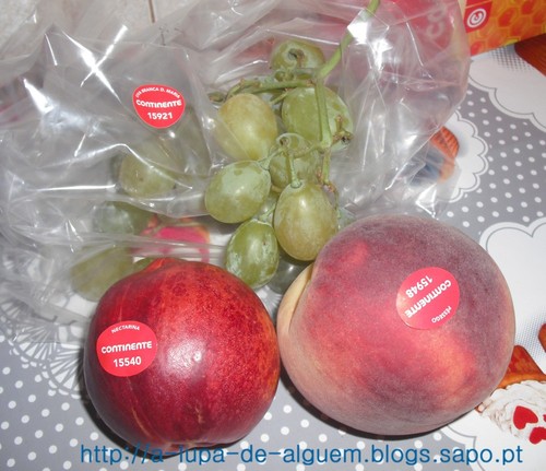 De certo que já muitos de vós reparam que no continente algumas frutas têm um autocolante. Esse autocolante é muito importante, pois tem o código de balança. Quer isto dizer, que nos continentes onde a fruta é pesada na caixa nós precisamos destes autocolantes. Por exemplo as maçãs, há tanta variedade, e são todas tão parecidas, que nem sempre é fácil identificar, por isso estes autocolantes são uma grande ajuda. Só que por vezes, os autocolantes caem, ou mesmo os clientes não sabendo da sua importância, tiram-nos. Pelo menos uma cliente já me disse que os retirava!