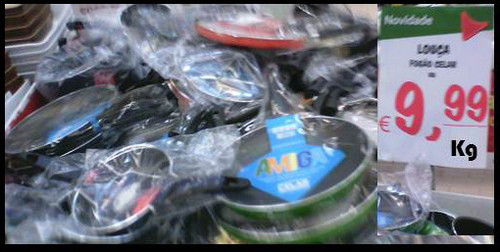 Chega à minha caixa um senhor com vários artigos. Começo a registar. Chego a uns tachos, panelas e afins. E gera-se o seguinte diálogo:
