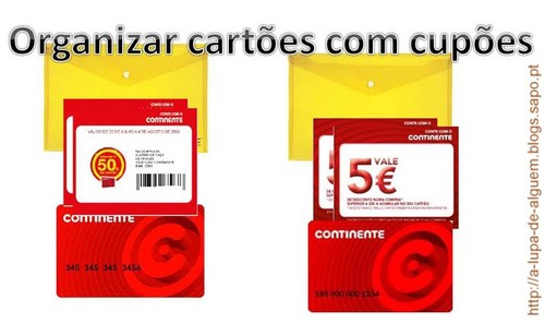 Se acham vantagem em ter mais que um cartão porque não organizam cada cartão com os seus cupões? Há uns mini envelopes de plástico que dão muito jeito para o efeito.