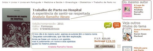 É normal existirem muitas pessoas com nomes iguais, mas quando nos toca a nós estranhamos sempre. E neste caso é alguém que também escreveu um livro e no site da Bertrand, o meu livro aparece como sendo da autoria da outra autora e vice-versa. É estranho não é?