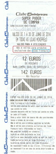Já sei que vão dizer: "Ah e tal, trabalhas no continente e vais à concorrência"! Pois é tenho essa liberdade, aliás todos temos. De vez em quando, vou a outros, ou porque há promoções que me dão jeito aproveitar, por proximidade, ou até para fazer "espionagem"! O caso deste super da concorrência é essencialmente pelo talho. Mas nem tudo é perfeito....se calhar o erro foi meu, porque não li as letras que diziam: não é valido para produtos exclusivos das lojas franquia, não li, nem me informei o que queria dizer lojas franquia. No meu caso, disseram que como os artigos que eu levava do talho não contavam, não podia usufruir do cupão com o desconto !