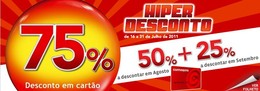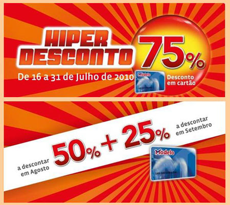 Entre 16 e 31 de Julho de 2011, ao apresentar o seu cartão continente na compra de artigos marcados com a promoção hiper desconto, beneficia de 75% de desconto em cartão. O valor do desconto será acumulado no saldo do cartão e estará disponível nas seguintes datas: