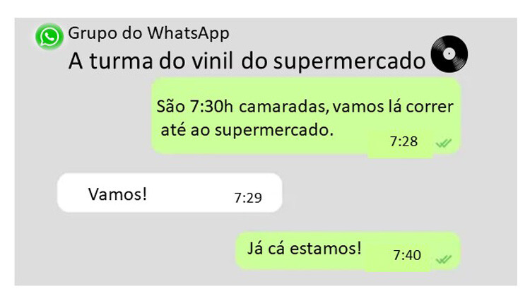 A turma do vinil é o nome carinhoso, que identifica, as pessoas com mais idade, a maioria já reformados, que costumam ir ao supermercado, logo pela manhã cedo. Uma parte deles (talvez 50%) não gosta de esperar, não querem ficar nas filas e reclamam; a outra parte são tranquilos.