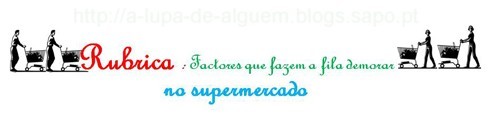 A limitação de tempo de espera nas filas de supermercados e hipermercados é um tema que muitas vezes me ocupa o pensamento. Talvez escrevendo sobre os factos que levam á demora, consiga de alguma forma, encontrar formas de limitação. Farei deste assunto uma, rubrica não diária, mas com alguma frequência (sem qualquer ordem por importância, ou outra razão qualquer). Estejam à vontade para fazer sugestões também.