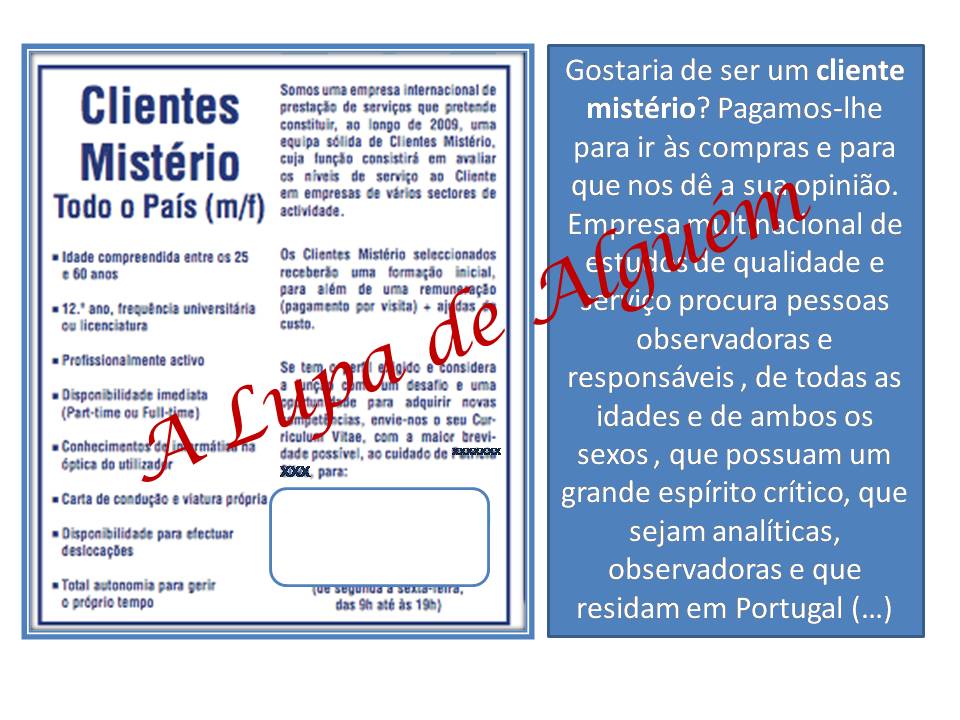 Recentemente recebi um comentário a um post que fiz aqui no blog, há uns anos atrás sobre o cliente mistério.